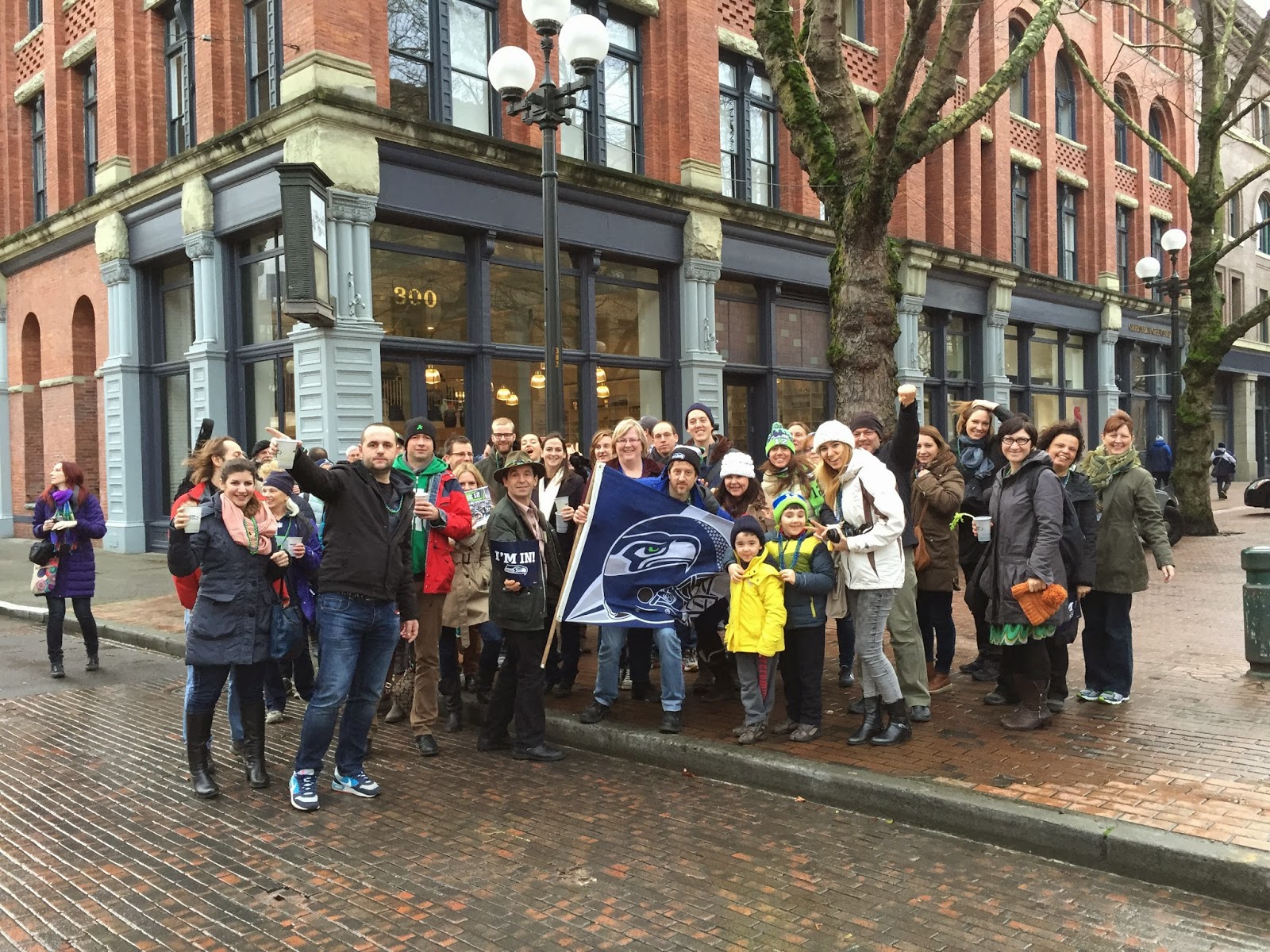 Our day proved to be a true NW experience as rain started to pour down. Most of us took shelter in coffee shops, crowded the window front seats to watch the Sea Hawks fans not minding the rain to support their team.