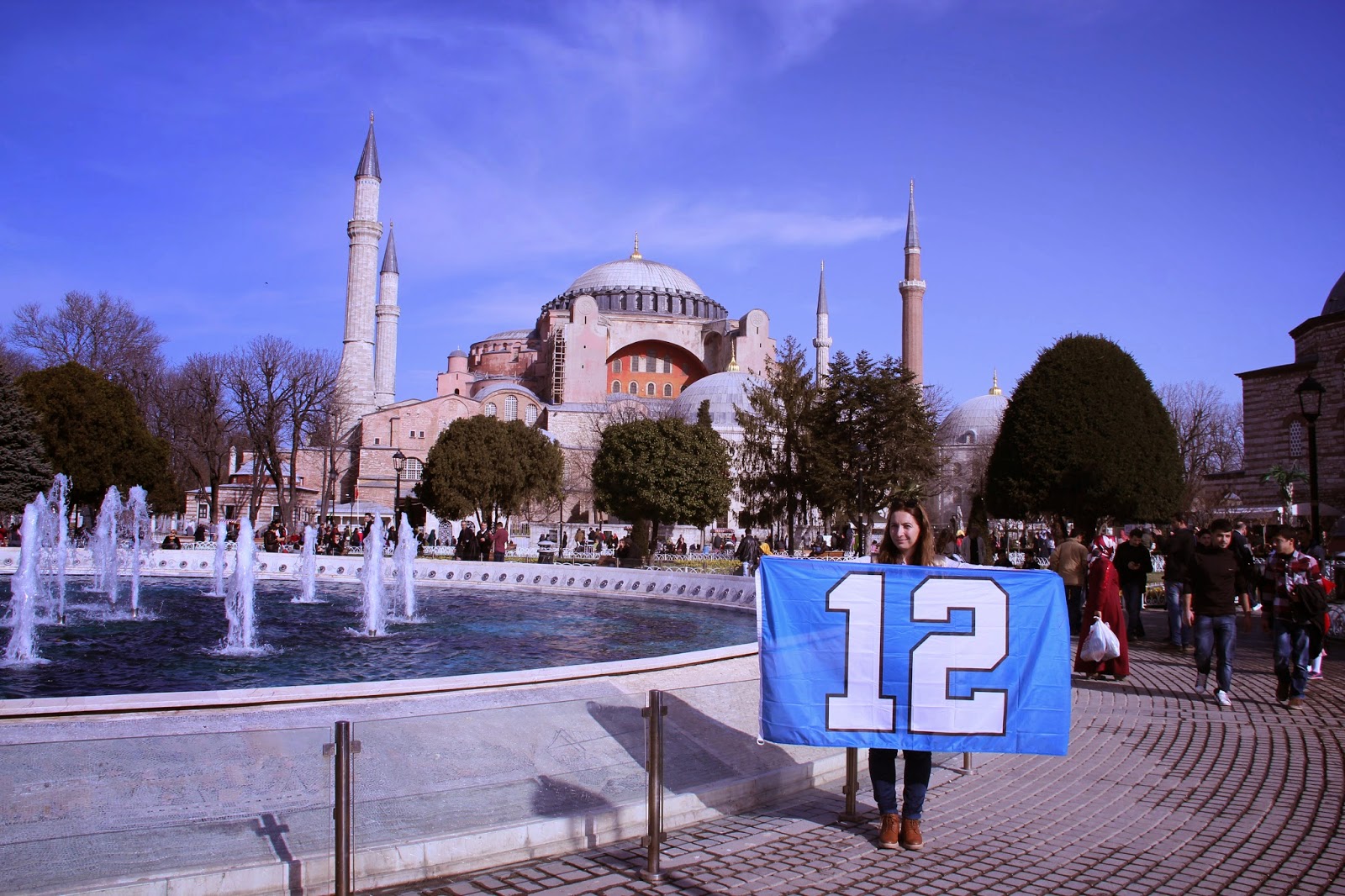 12th man in front of the Hagia Sophia Cathedral in Istanbul. This structure is from the 6th century and was the ONLY grand cathedral for about 1000 years until the Reneissance in Europe. Today, it is one of the most popular sights in Istanbul and serves as a museum.
